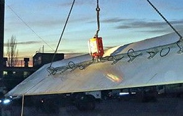 Офисный центр в Челябинске построили с помощью вакуумного захвата Арлифт «ARLIFTER SP-4 / SPD-4». Были смонтированы сэндвич-панели длиной 11,5 метров.