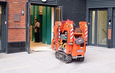 Самый маленький мини-кран Арлифт помог смонтировать стеклянную перегородку в квартире.