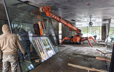 Замена крупного стеклопакета в помещении
