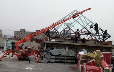 Профессиональное оборудование АРЛИФТ на монтаже зенитного фонаря