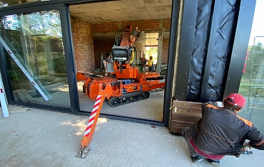 Мини-кран, вакуумный захват линейки GS и самозажимные тележки АРЛИФТ произвели монтаж стеклопакетов в частном доме в Ленинградской области.