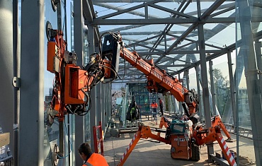 Мини-кран SPX527 и вакуумный захват ARLIFTER GS-500 произвели монтаж стеклопакетов весом до 400 кг на АЗС.