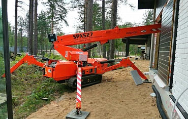 Монтаж деревянных конструкций с помощью мини-крана SPX527CDH