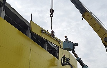 Монтаж сэндвич-панелей. ТРЦ Охта Молл