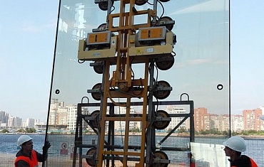 Реконструкция фасада Дворца Молодежи, Екатеринбург. Монтаж стекла весом 1100 кг
