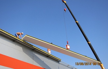 Монтаж 13-ти метровых кровельных сэндвич-панелей