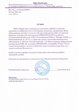 Отзыв от ООО "МераСтрой"