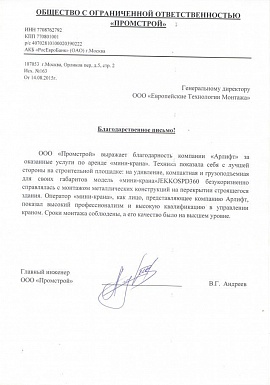 Отзыв от ООО "Строитель-КВ"