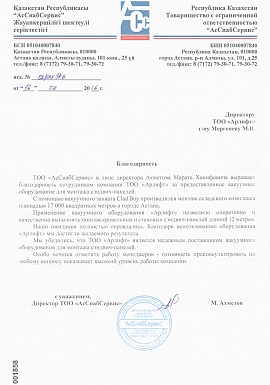 Отзыв от ТОО "АсСнабСервис"